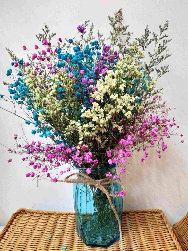 干花既不失原有植物的自然形态美,又可以根据需要进行染色,插好后可以放置很长一段时间。