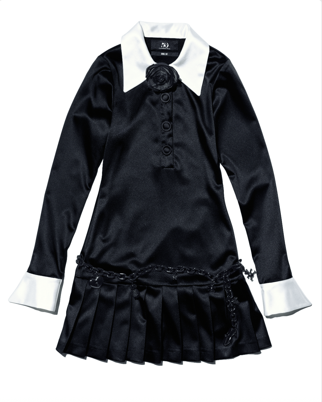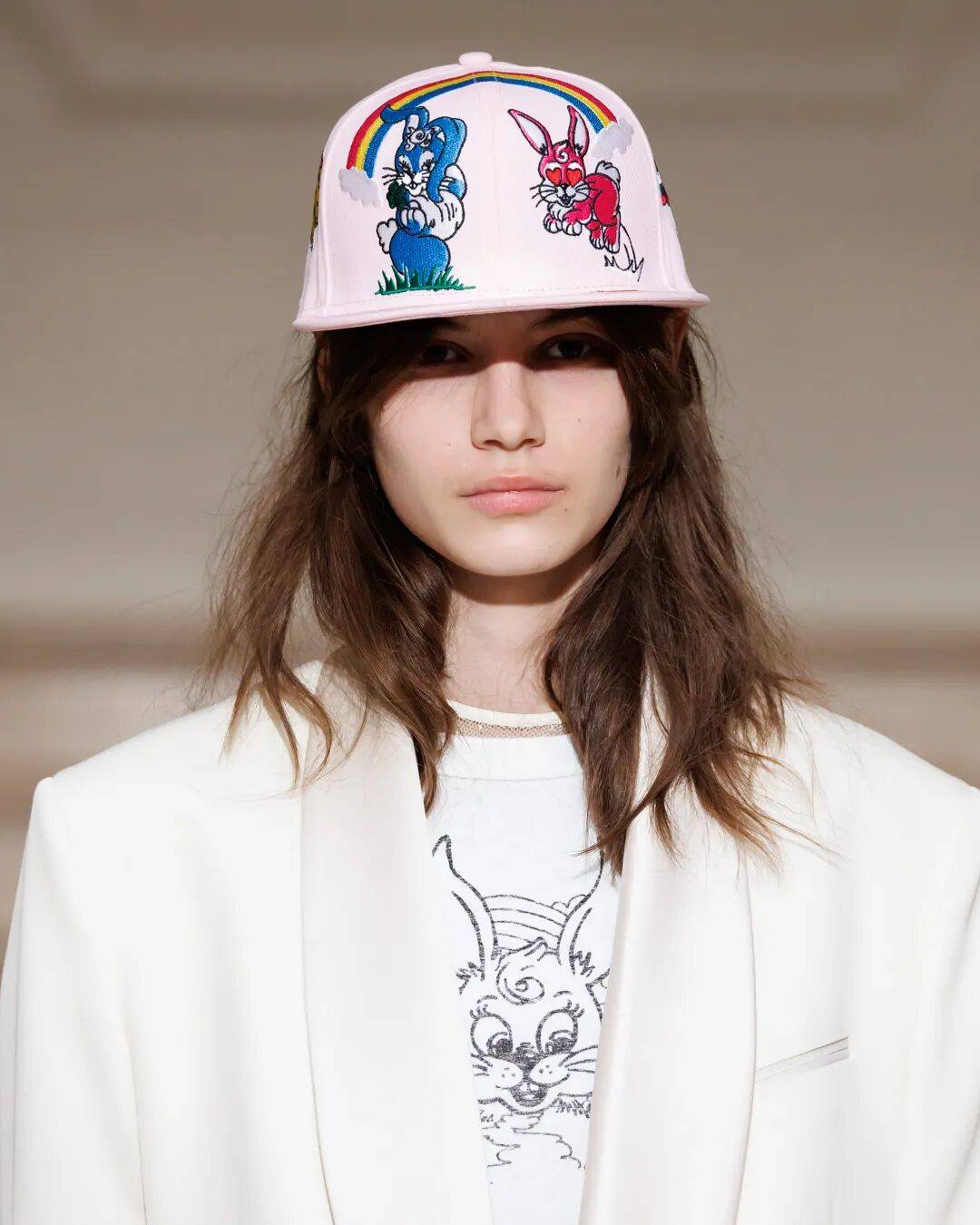此次联名系列以KENZO Lucky Me Cartoon和KENZO Graduation为主题,推出三款限定单品。前者的灵感源自FW79 KENZO系列,饰有多样毛绒动物元素,又融合了2025秋冬系列广告大片中的主角Luke与K@li的浪漫童话故事,以鲜明生动的兔子刺绣作为核心图案,搭配黑粉双配色,飞扬着活泼俏皮的玩趣。