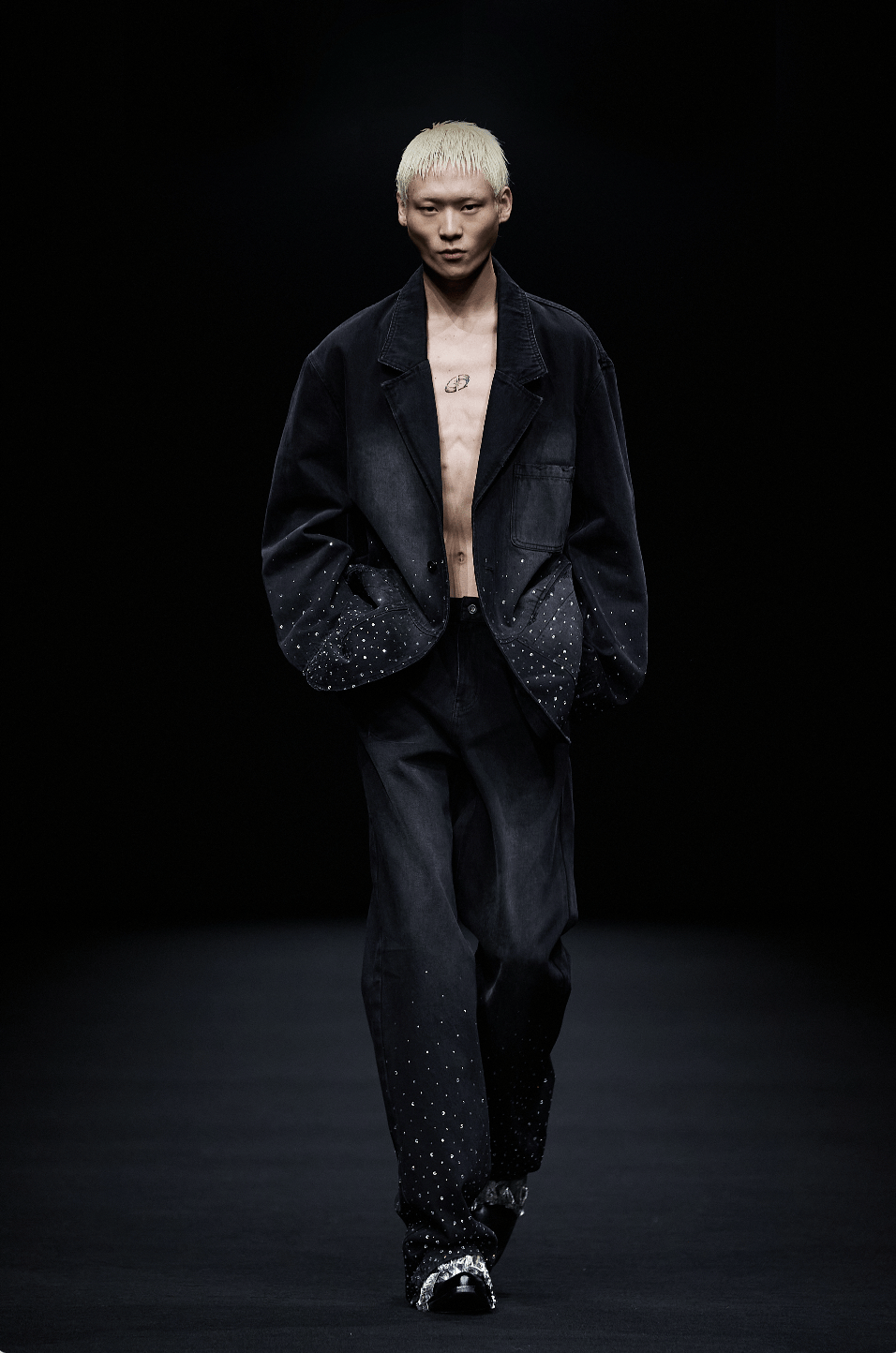 本系列作品以挺阔西装、做旧单宁、战损感卫衣及流光缎面,串联起从笃定启程到孤寂航行,从破碎重生到自由抵达的心路历程……全新系列覆盖通勤、度假、社交等多元场景,贯彻SENSEAWEEK“周循环哲学”的品牌理念,以“可穿戴的故事”传递坚韧与自由的生命张力。