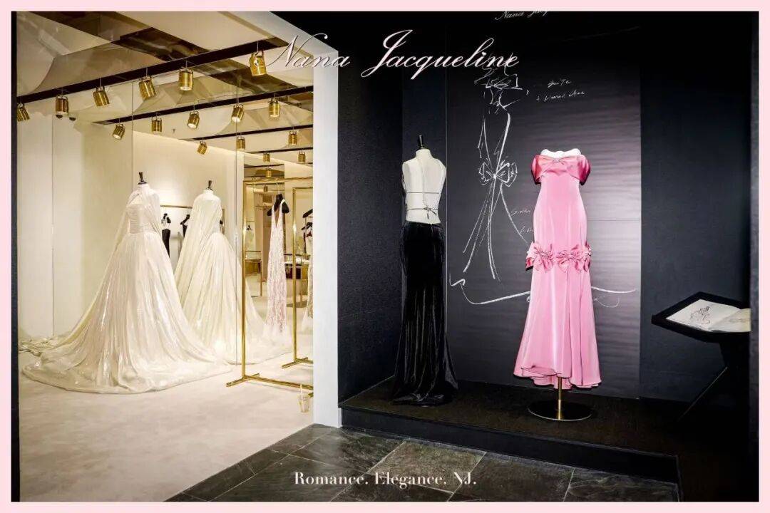 新店以品牌标志性的粉色与金色为主调,营造出兼具浪漫与奢华氛围的购物空间。店内分为两层结构:首层集中展示珠宝、鞋履与成衣系列,二层呈现全系列服饰,并特别设置礼服专属展示区与VIP贵宾室,进一步强化品牌对高端消费体验的重视。