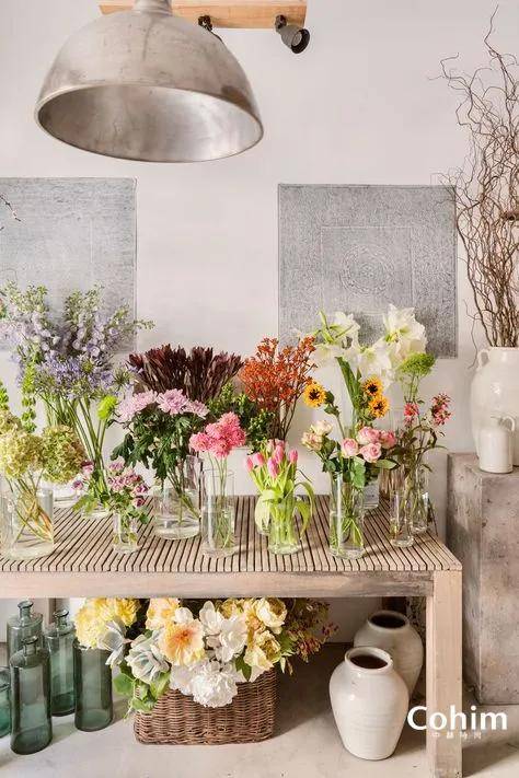 场景化的陈列可以给顾客充分的想象空间,直观地展现花植在未来生活空间的应用。模仿日常生活中的场景,客厅、餐厅、卧室、阳台、书房等,在这些家居场景中融入鲜花绿植,不仅可以提高顾客的购物体验,还可以让用户对这种场景产生美好的向往,购买的欲望油然而生。