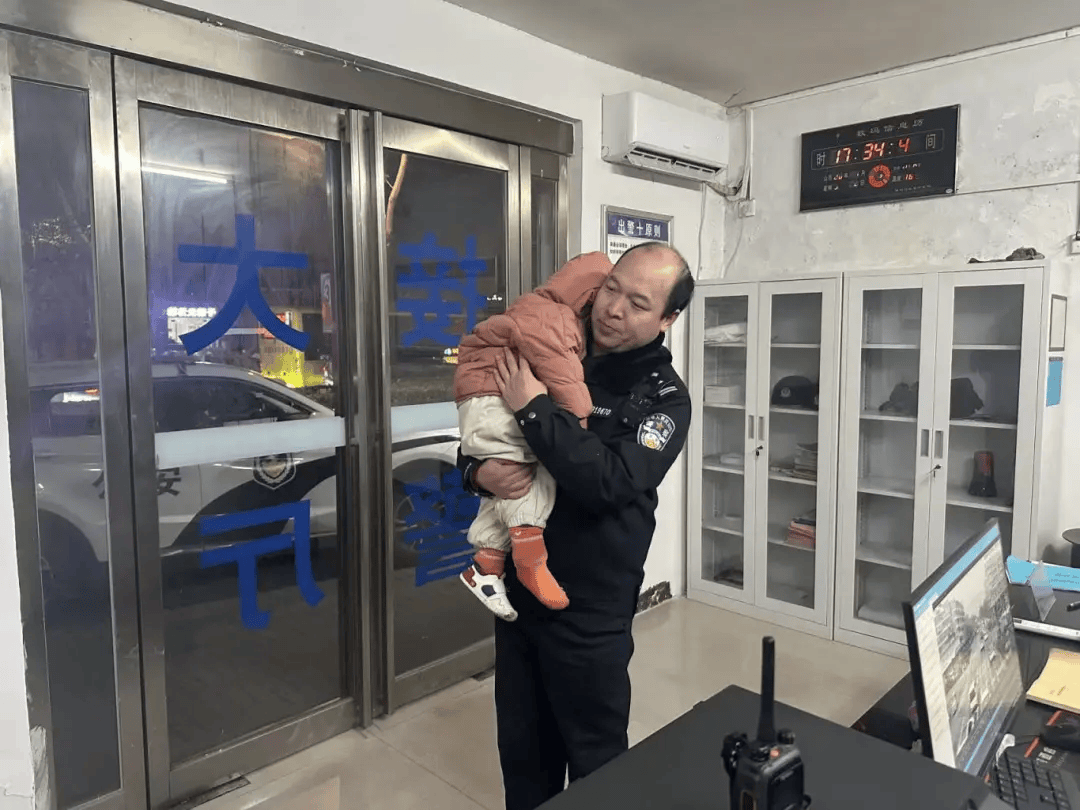 高俊亮当即买来新袜子,蹲下身轻轻为孩子换上。回到派出所,孩子一离开怀抱就哭闹,两位民警便轮流抱着他,轻拍安抚,直到孩子在他们肩头安然入睡。