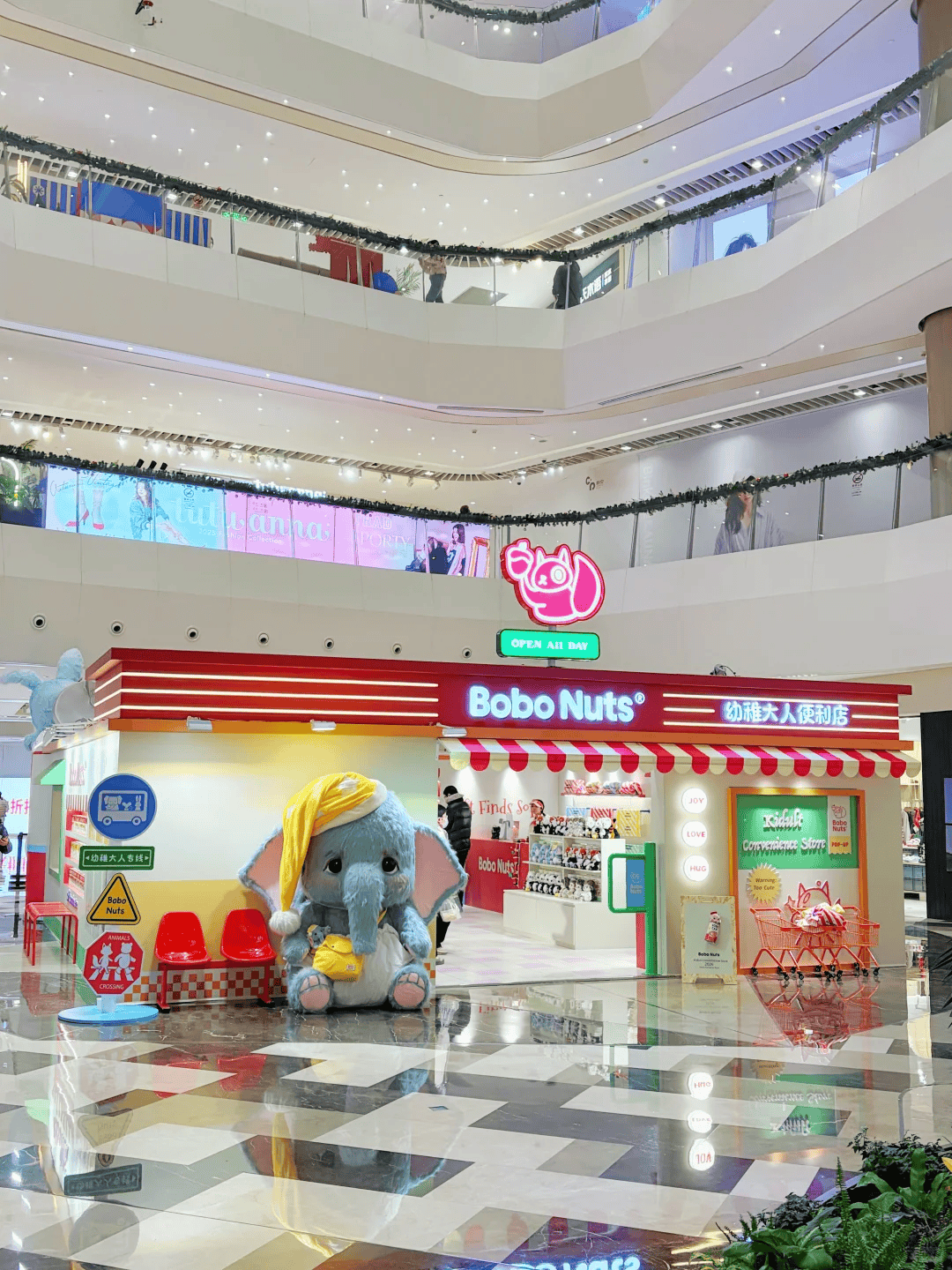 这个冬天,靠Bobo Nuts把快乐补满吧!Bobo Nuts 把一整家 美式复古风「幼稚大人便利店」 搬到了线下,你一走进来就会直接切换到开心模式——灯光、色彩、陈列,全都是为“想要一点冬日多巴胺”的你准备的现场体验。 巨型 Rubii 象和 Lopi 兔已经在店里等你,现场真的比照片更上头。