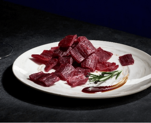 荷美尔®和牛牛肉干,从选材之初便非同凡响。荷美尔严选被誉为“餐桌上的艺术品”的进口谷饲和牛,其肉质细腻,油花分布均匀,呈现出如雪花般瑰丽的纹理,每一片都散发着迷人的独特脂香。同时,荷美尔精心选取和牛身上极为稀有的“米龙”部位,刚好的韧劲与平衡的脂润带来层次丰富的咀嚼感。