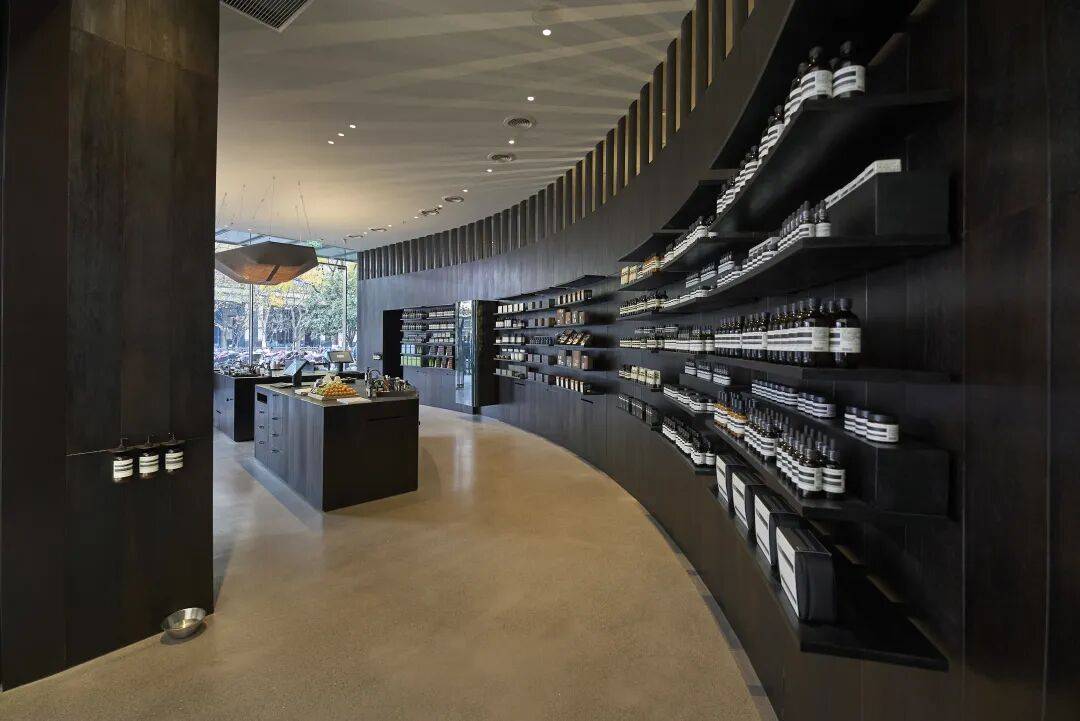 Aesop伊索杭州湖滨IN77店,由品牌与刷刷建筑(atelier suasua)携手打造而成。店铺中的产品层架由本地工匠以大漆手工髹涂,而在水槽与器物表面,大漆下浮现出的布料肌理则展现出不同材质的层次对比,愈加凸显这一非遗技艺的东方雅韵与别样之美。
