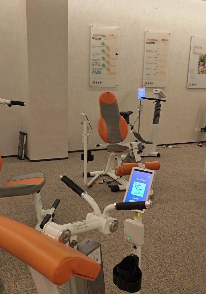 另外还有康复中心,配备健康检测一体机、人体成分仪、骨密度检测仪等全方位健康检测设备,以及适合老年人康复训练的健身器械,帮助老年人恢复身体机能,提高生活质量。