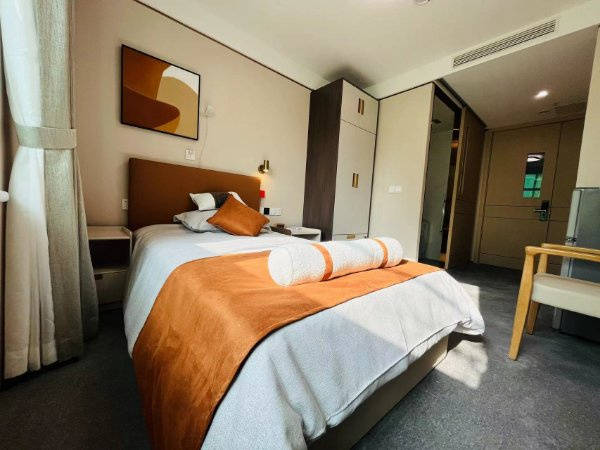 房间里的生活设施也都配得很齐全,还有紧急呼叫系统,万一老人有突发情况,能及时联系到工作人员,住着特别安心。家具家电、床上用品、卫生洁具,都是按星级宾馆的标准来的,住着舒服又安全,就跟在家一样自在。