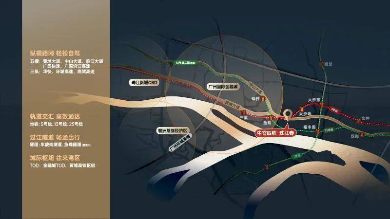 【潜力足】规划建设临江大道东延线、鱼珠隧道、沙鱼洲隧道、金融城广场综合枢纽中心、黄埔高铁站系列交通配套,构建黄金十字轴线