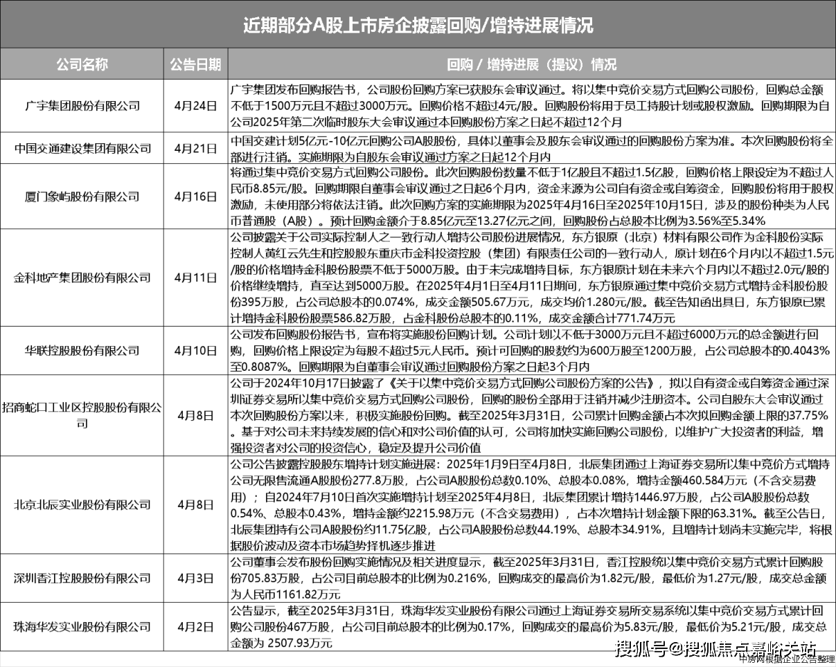 4月份以来,全球市场剧烈波动,多家上市房企发布回购增持等计划公告,充分体现了维护上市公司价值的坚定决心。